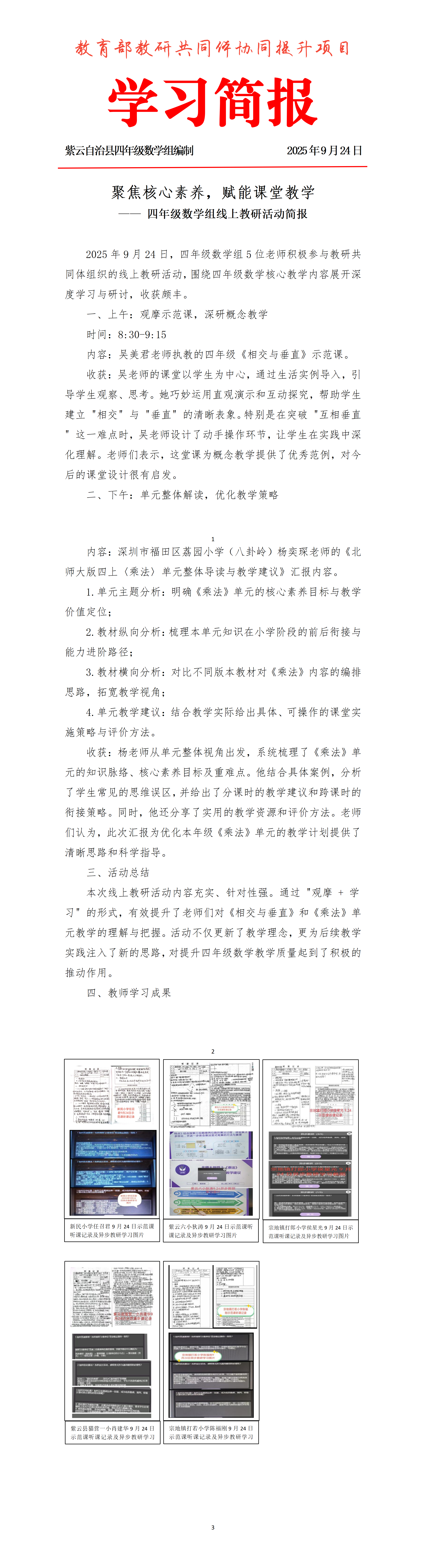 聚焦核心素养,赋能课堂教学——紫云自治县教研共同体9月24日学习简报(四数)