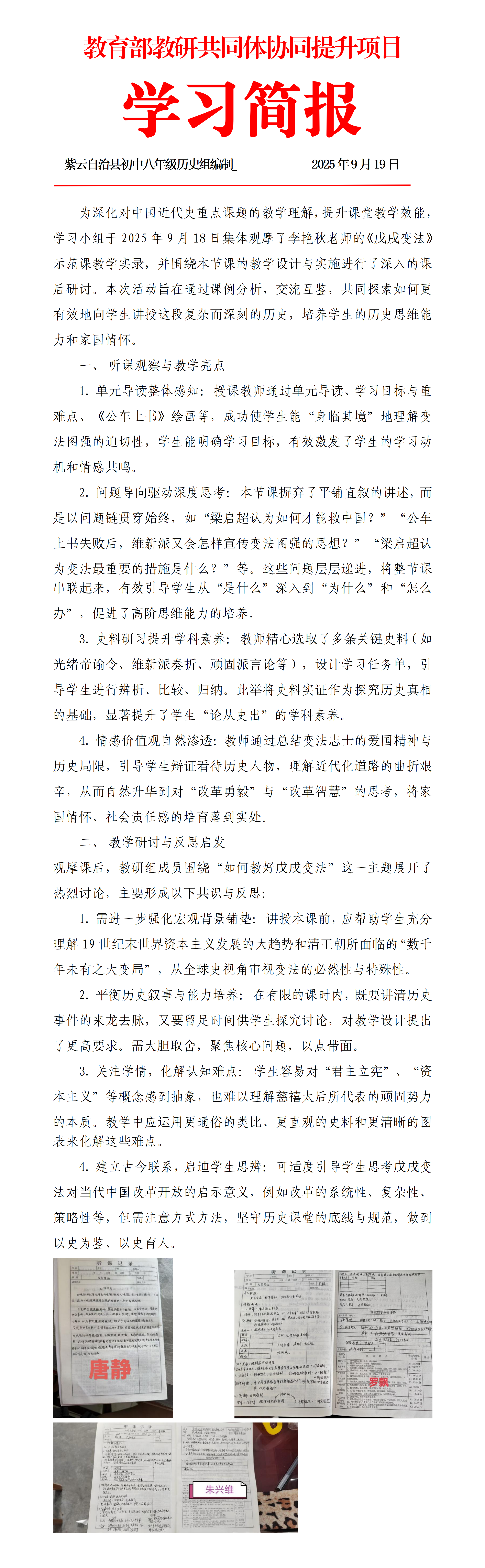 紫云自治县八年级历史学科教研共同体学习简报(第4周)