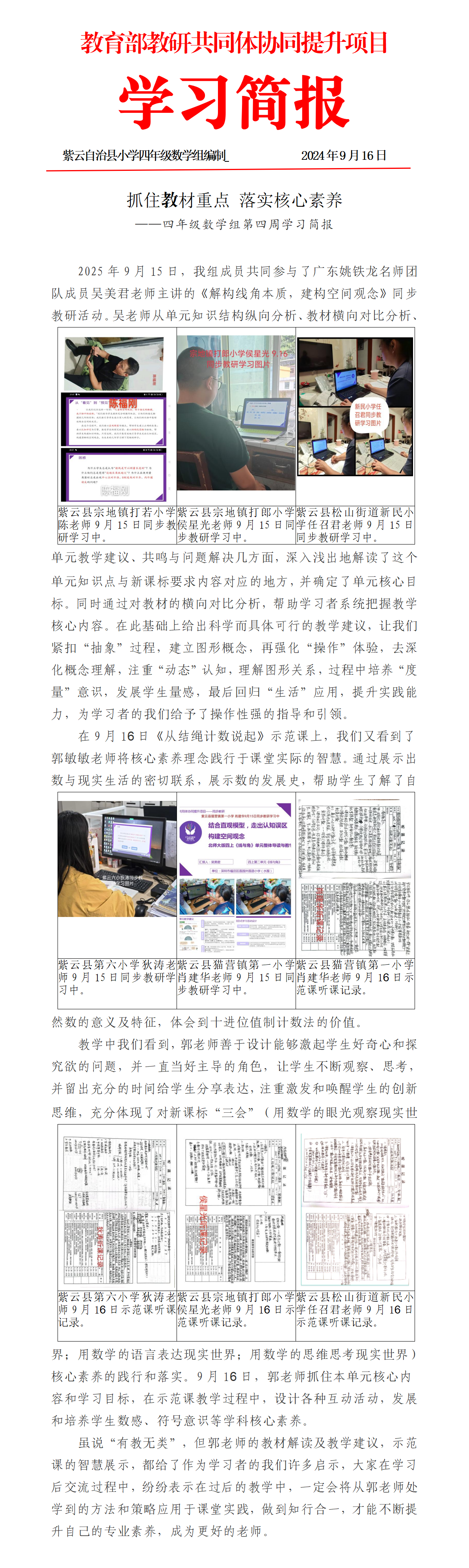 抓住教材重点 落实核心素养——紫云县四年级数学组第四周学习简报