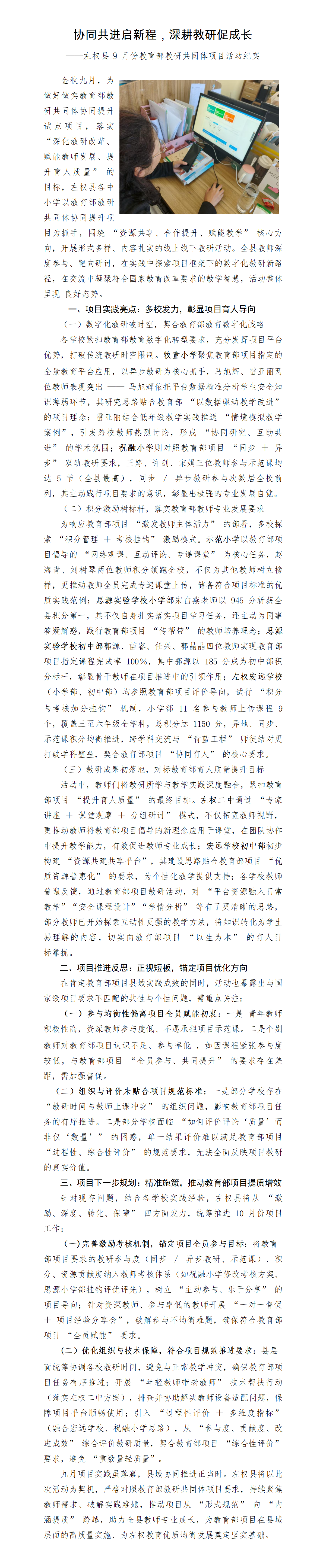 协同共进启新程,深耕教研促成长——左权县 9 月份教育部教研共同体项目活动纪实