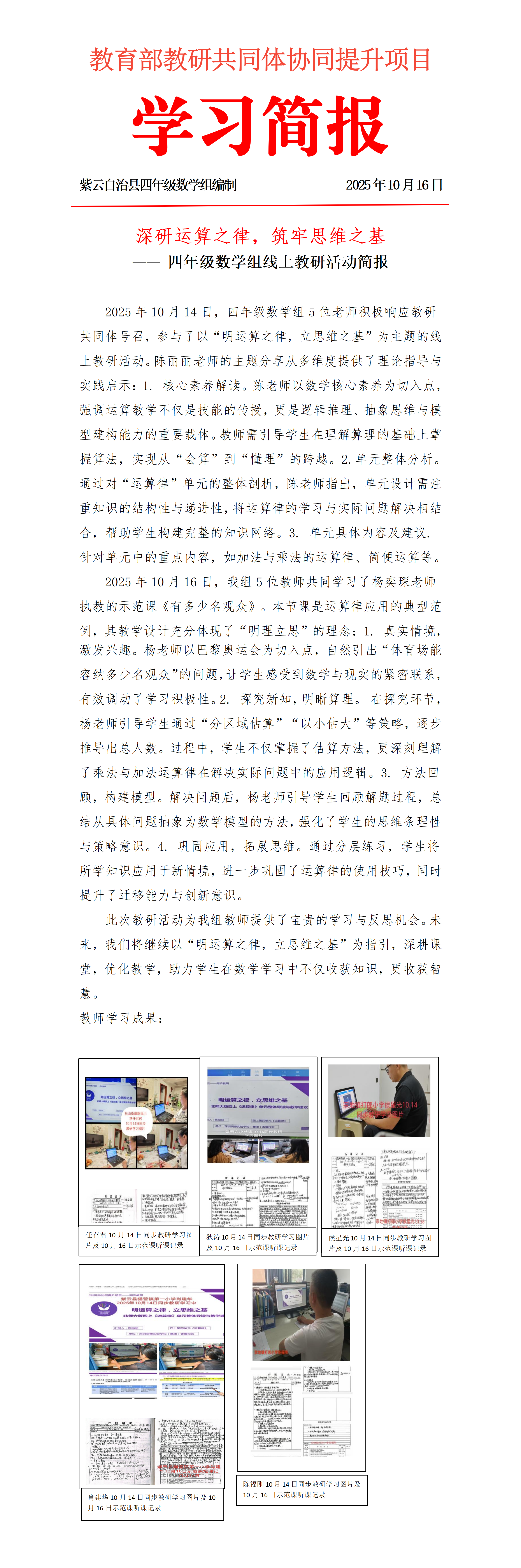 深研运算之律,筑牢思维之基——紫云县四年级数学组线上教研活动简报