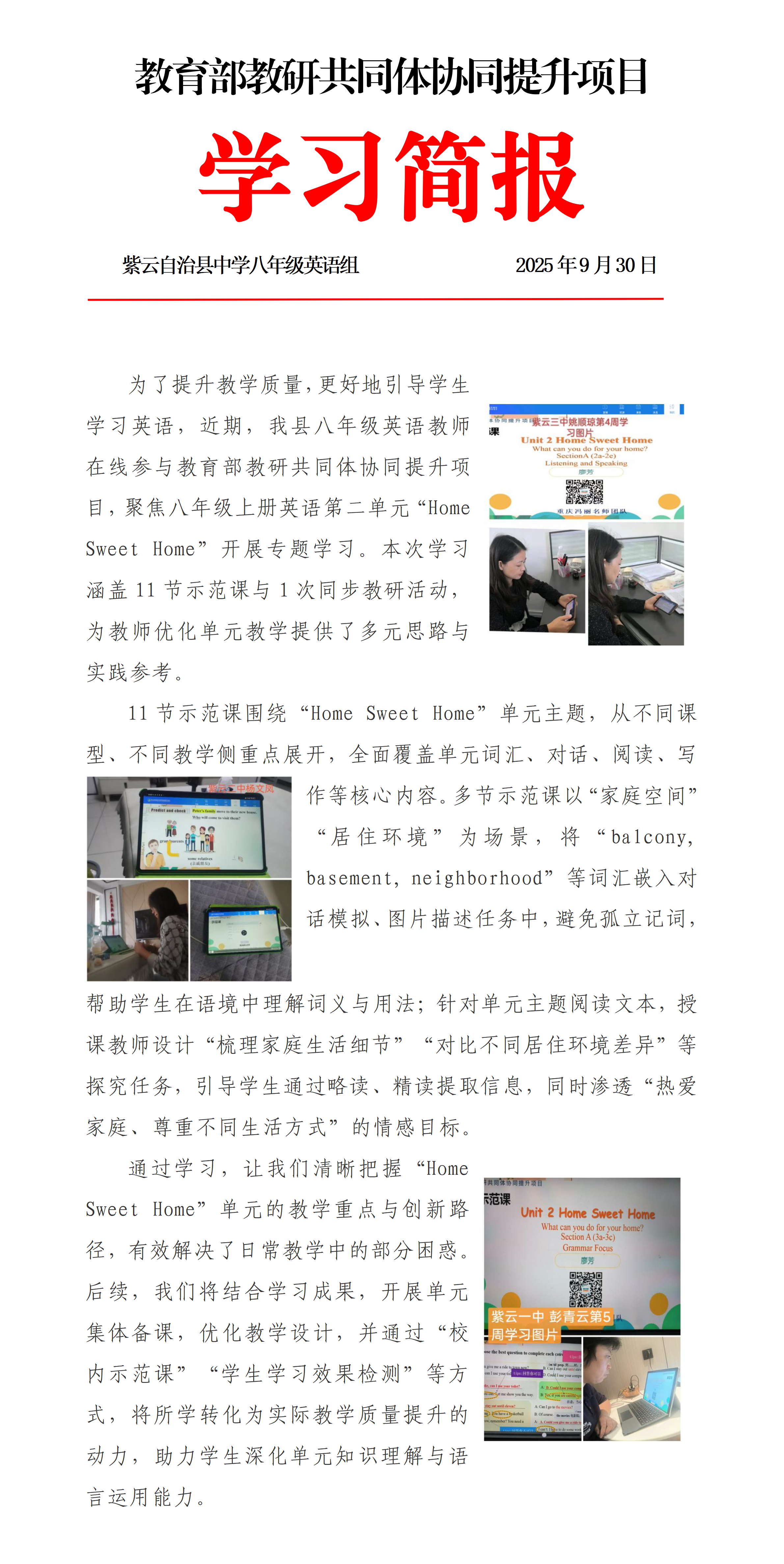 (第6周)紫云自治县八年级英语Unit2 学习简报