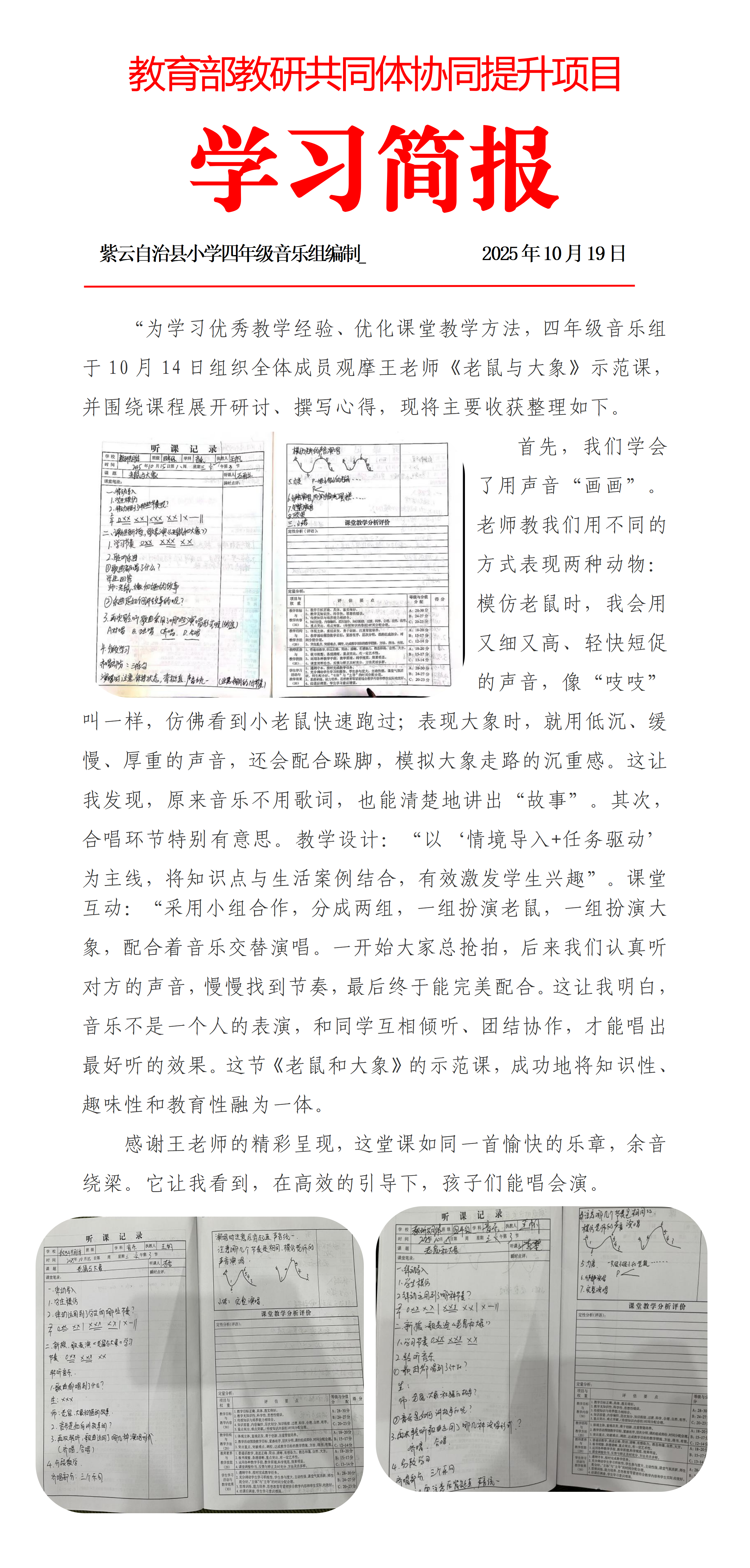 (第8周)紫云自治县四年级音乐学习简报模版