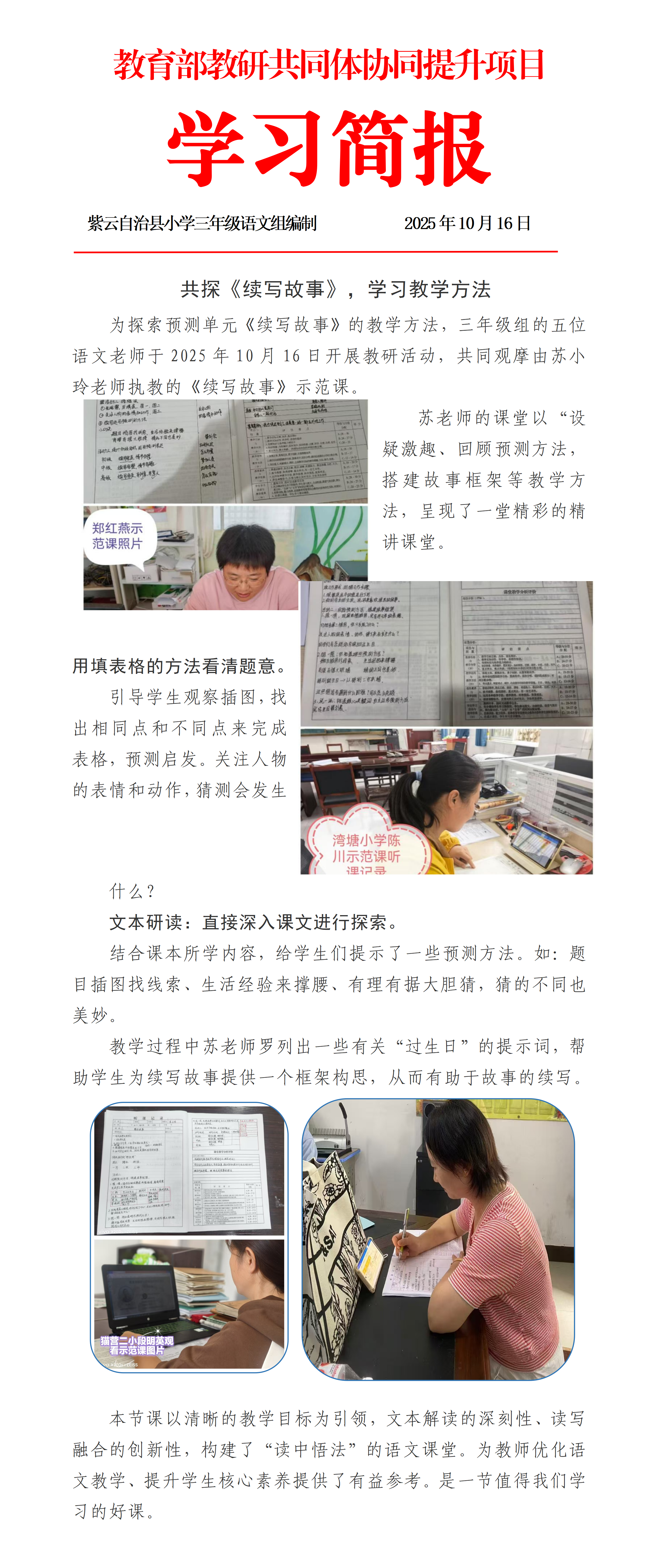 共探《续写故事》,学习教学方法——(第8周)紫云县三年级语文学习简报