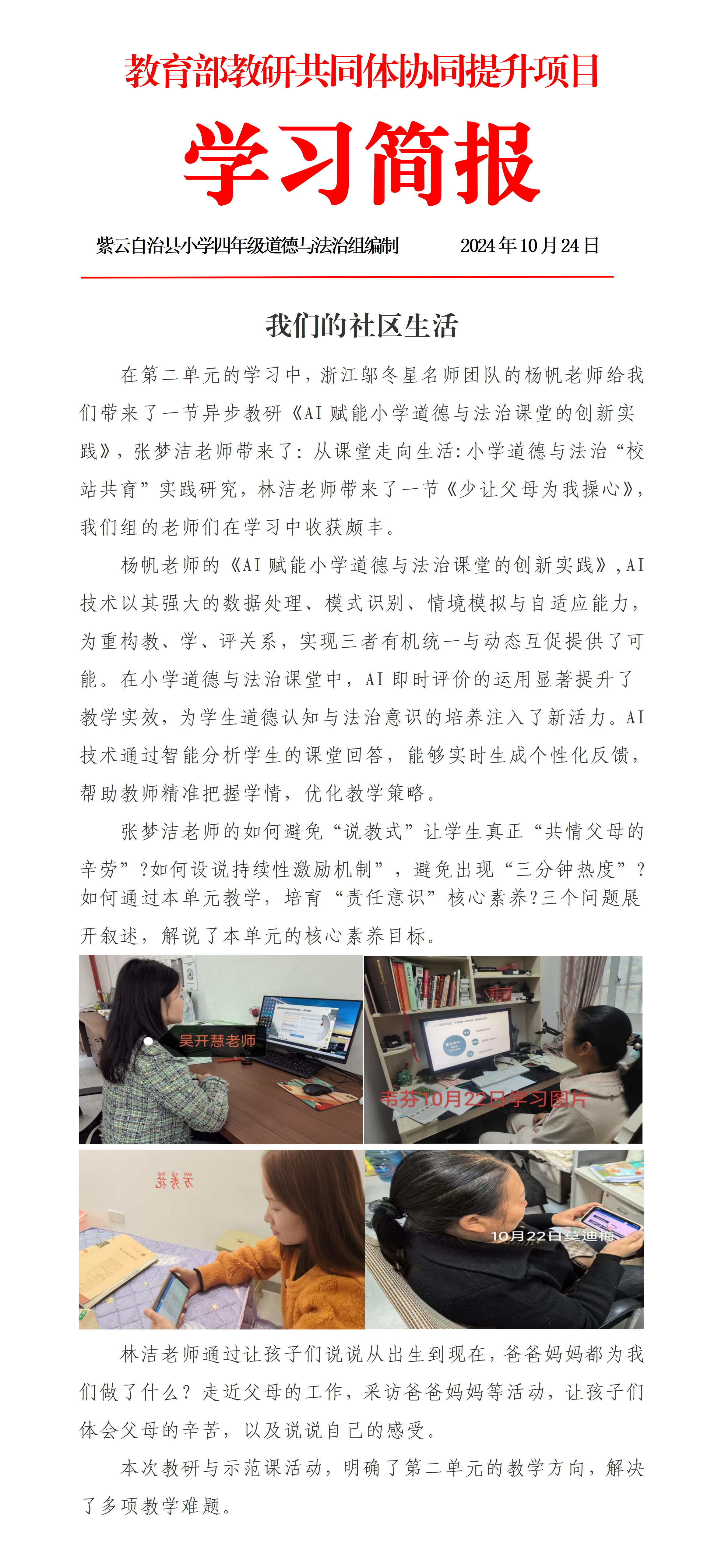 我们的社区生活——紫云县四年级道德与法治组第九周简报