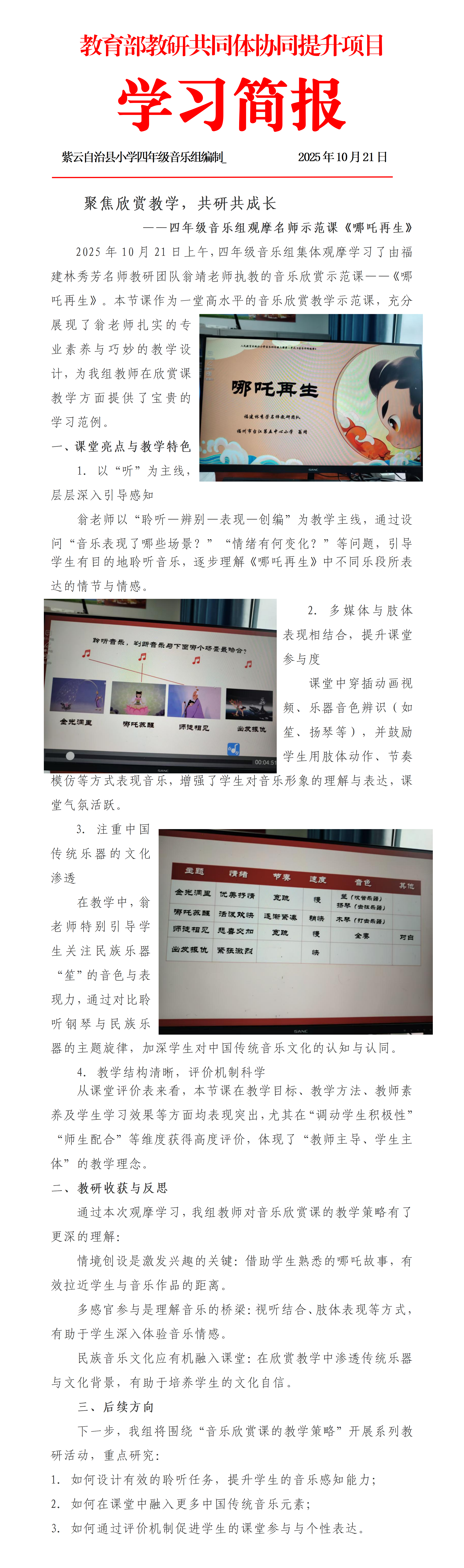 聚焦欣赏教学,共研共成长——紫云县四年级音乐组观摩名师示范课《哪吒再生》学习简报