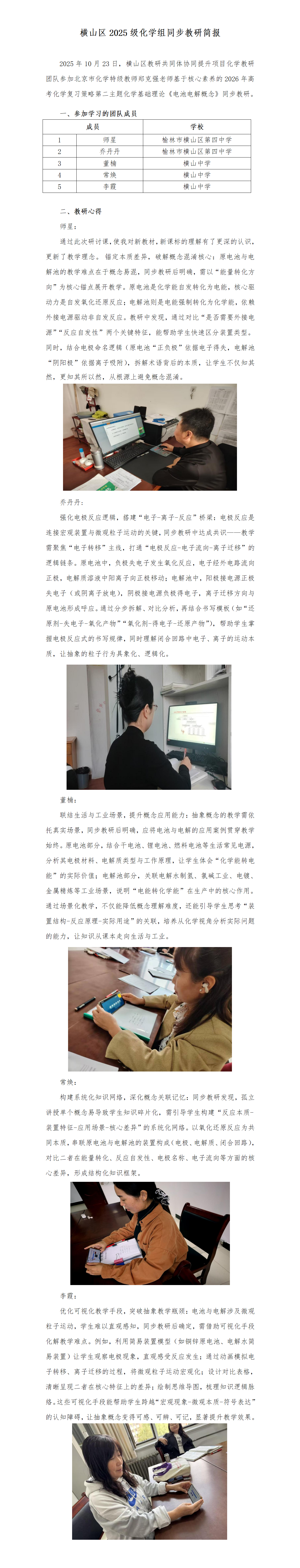 横山区2025级化学组同步教研简报