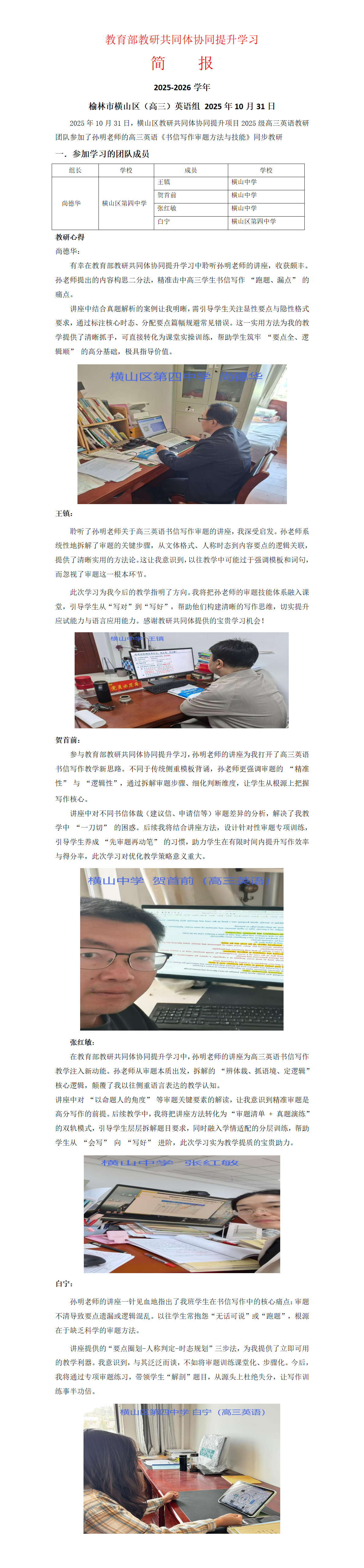 横山区高三英语组《书信写作审题方法与技能》同步教研简报