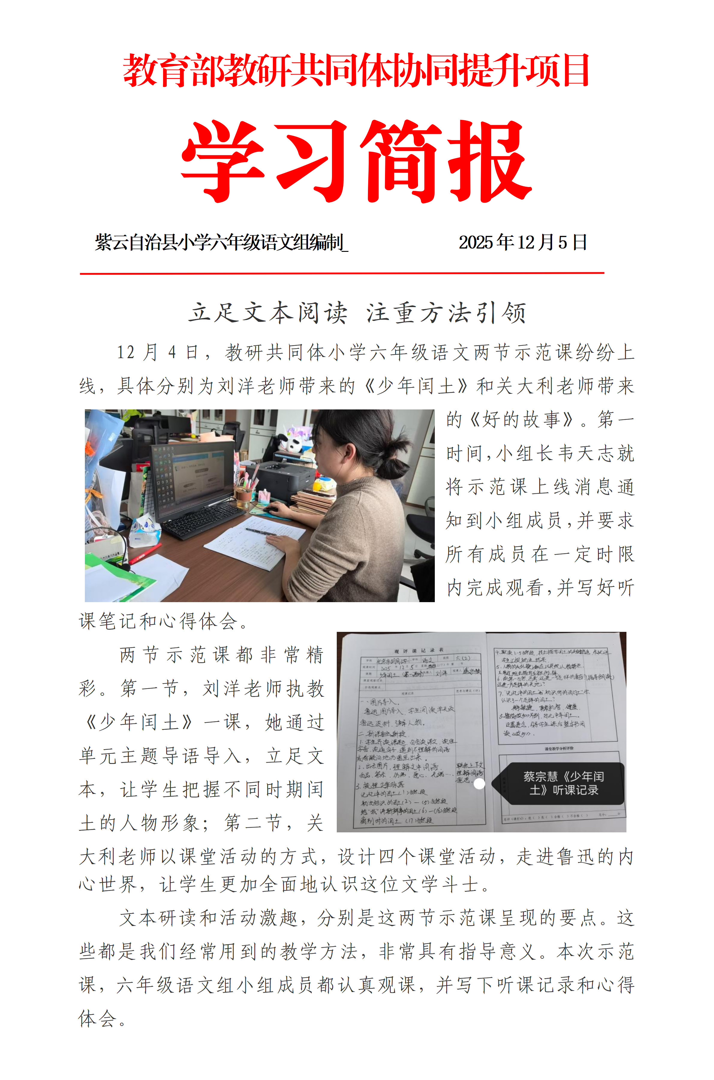 立足文本阅读 注重方法引领——紫云县六年级语文学习简报