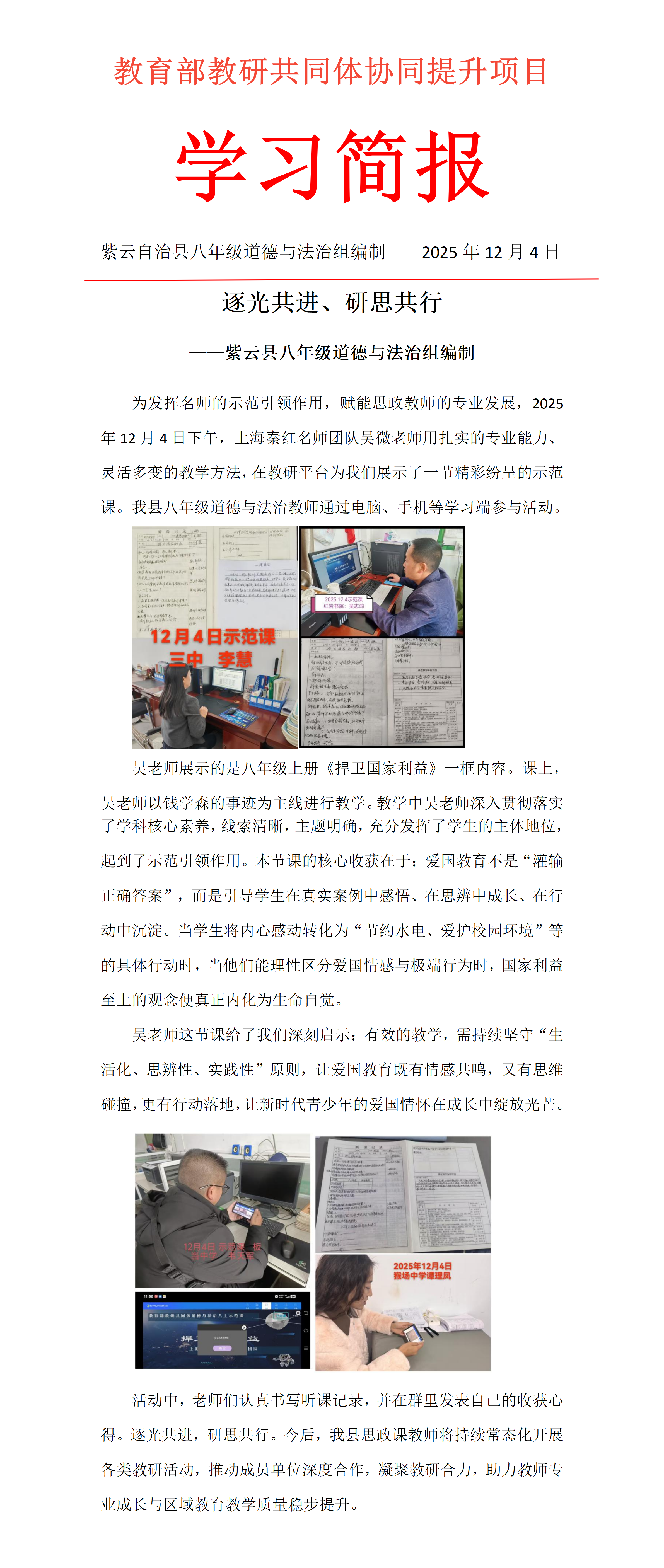 逐光共进、研思共行——紫云县八年级道德与法治组学习简报