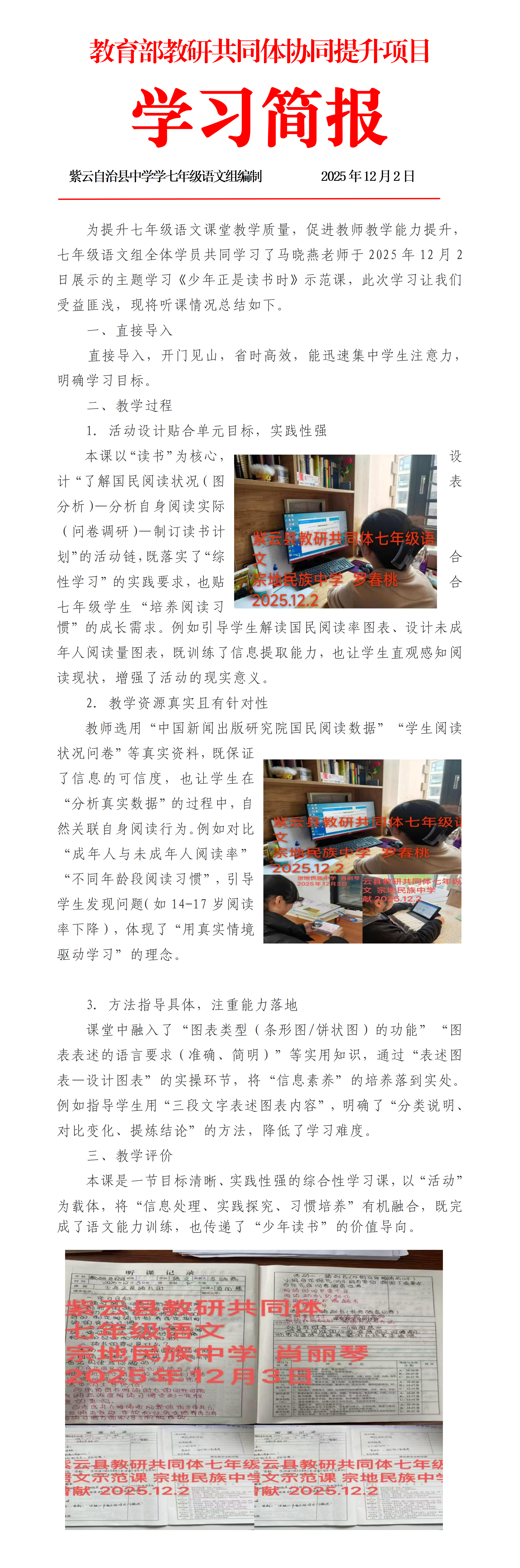 紫云自治县七年级语文学科学习《少年正是读书时》示范课简报