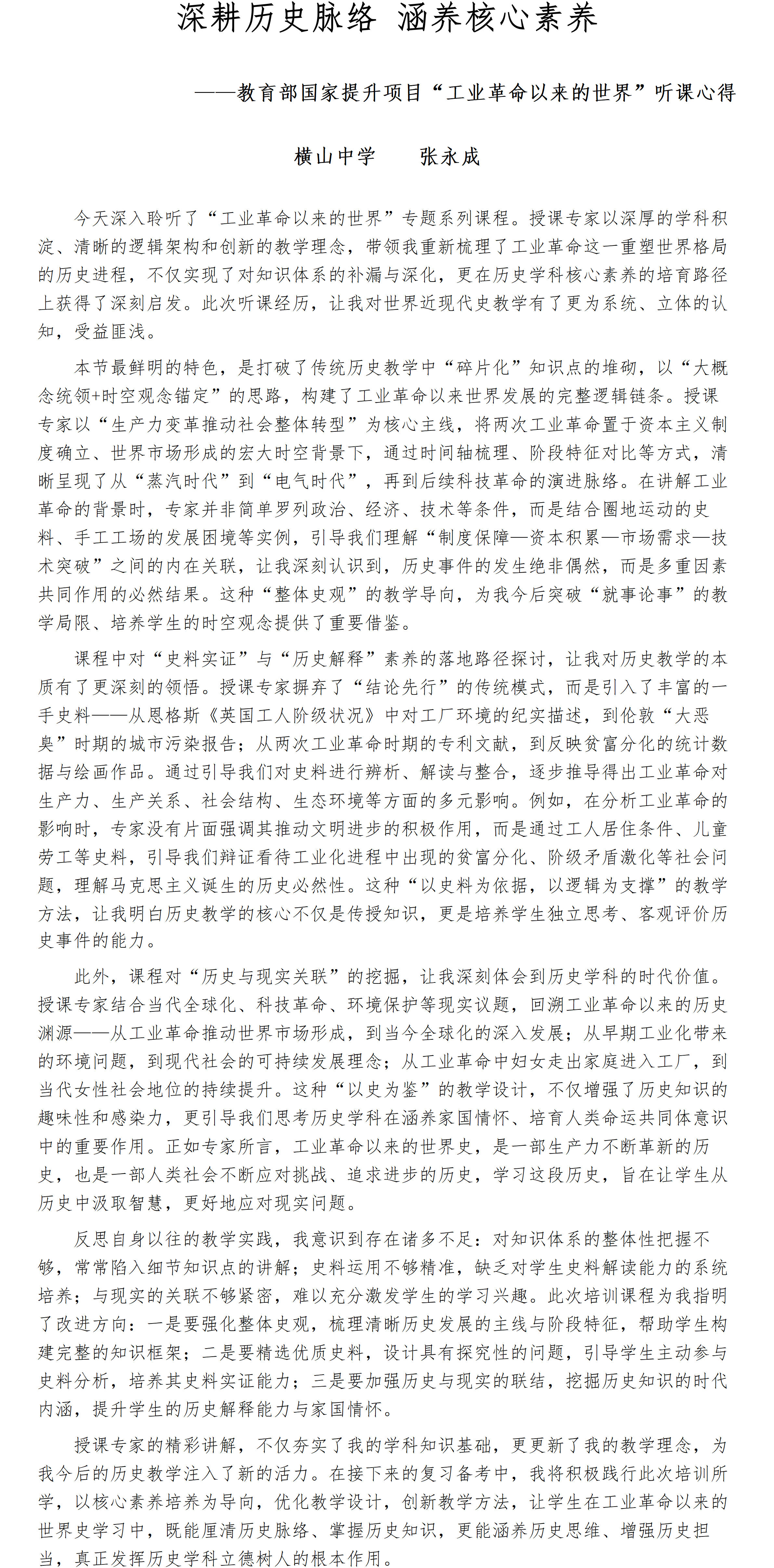 深耕历史脉络 涵养核心素养——教育部国家提升项目“工业革命以来的世界”听课心得(横山中学 张永成)