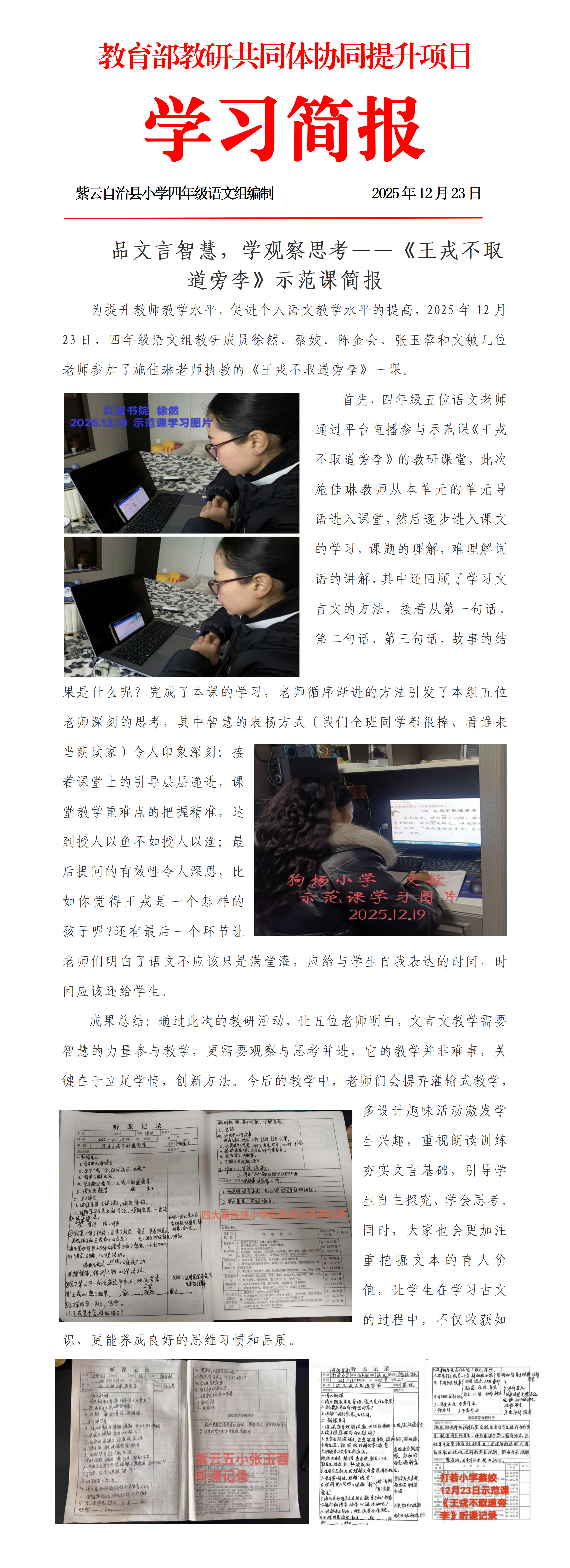 品文言智慧,学观察思考——紫云自治县四年级语文教研共同体学习纪实