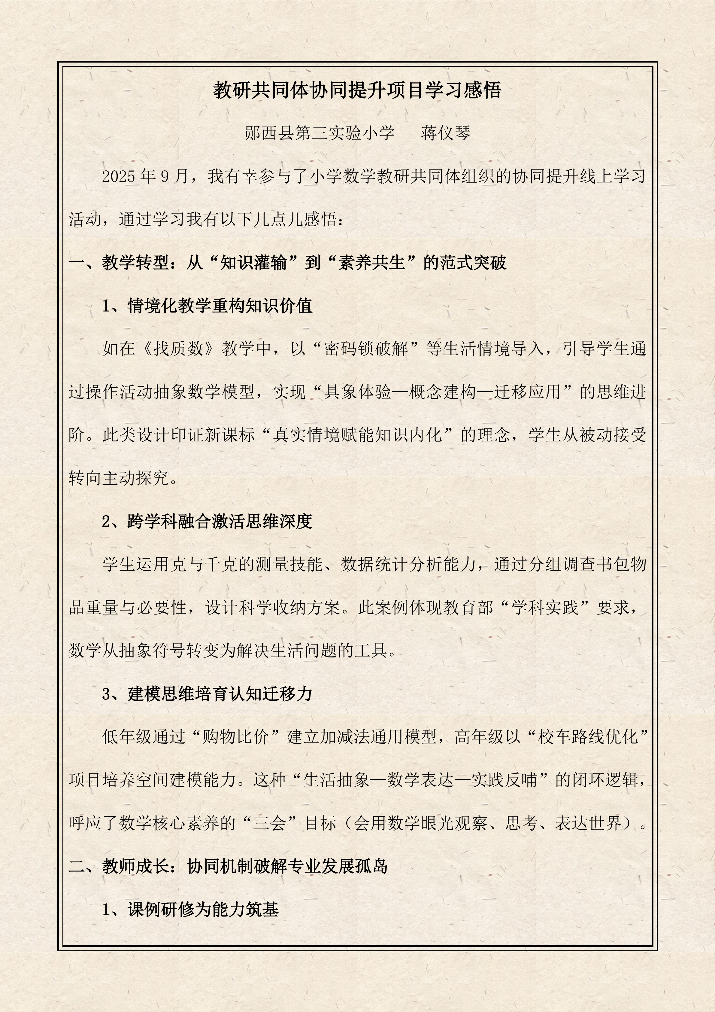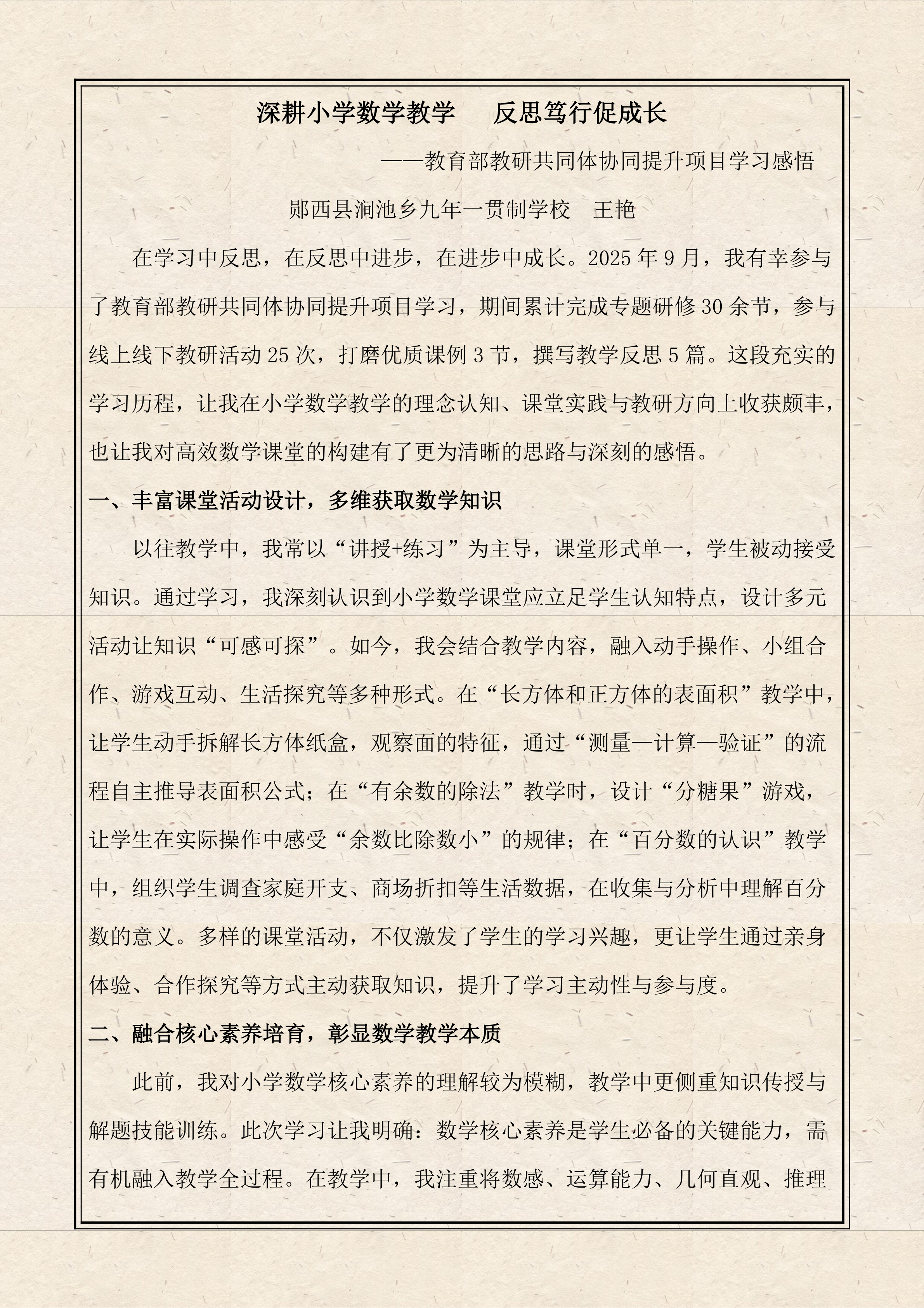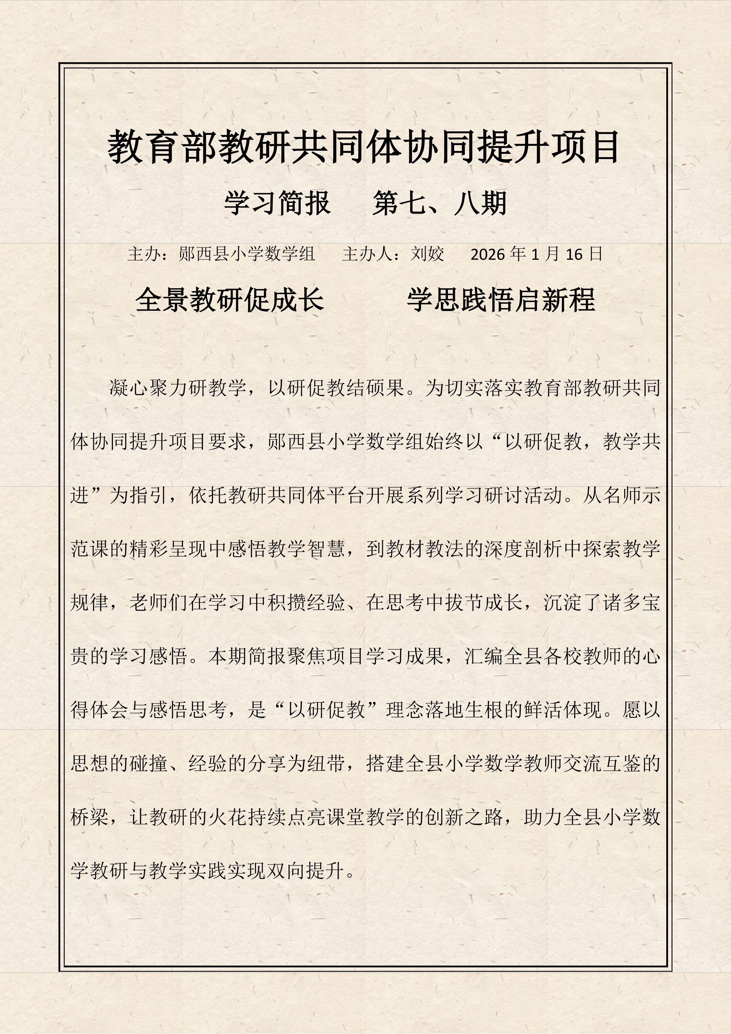 全景教研促成长 学思践悟启新程——郧西县小学数学第7、8期学习简报