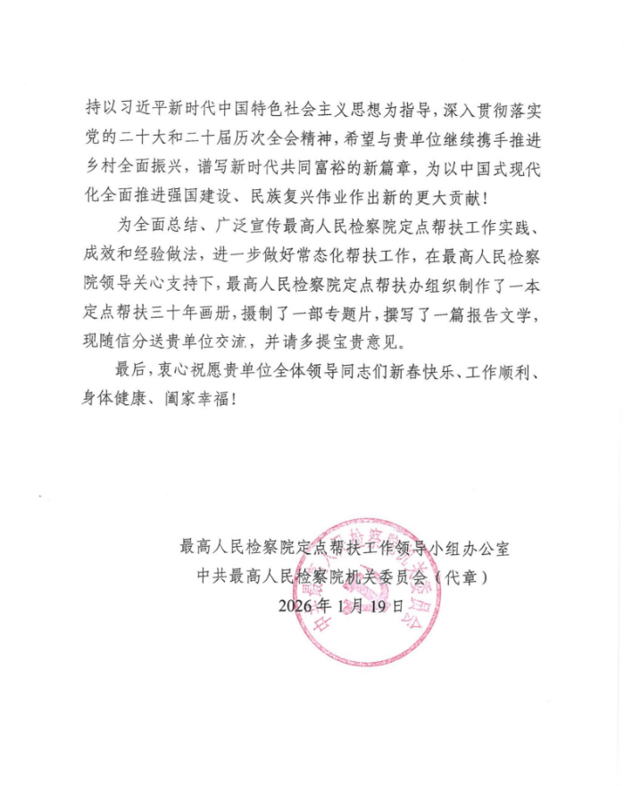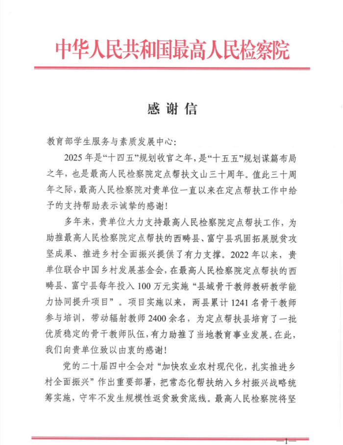 最高人民检察院感谢信