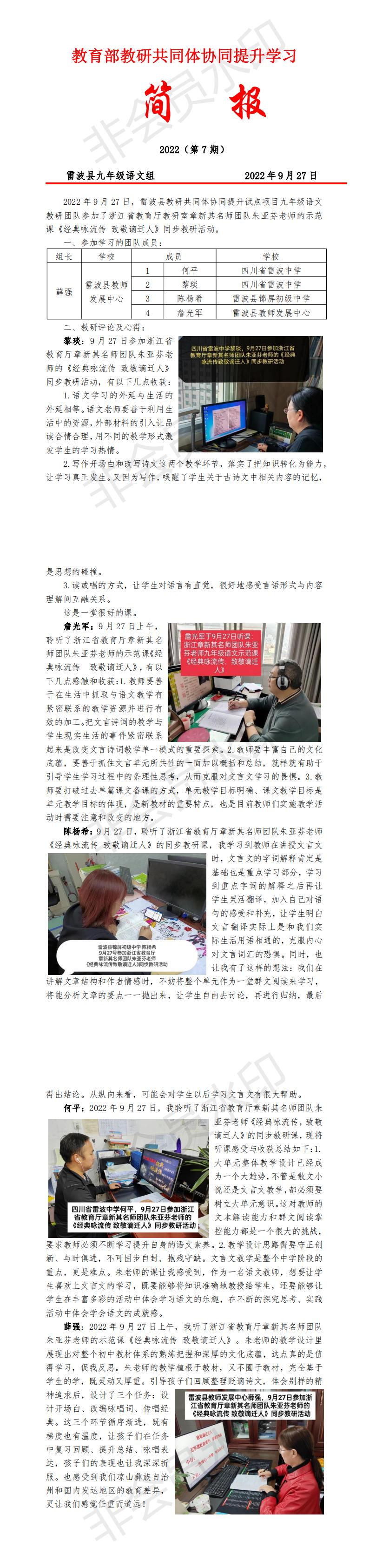 7.雷波县九年级语文教研团队20220927日学习简报7